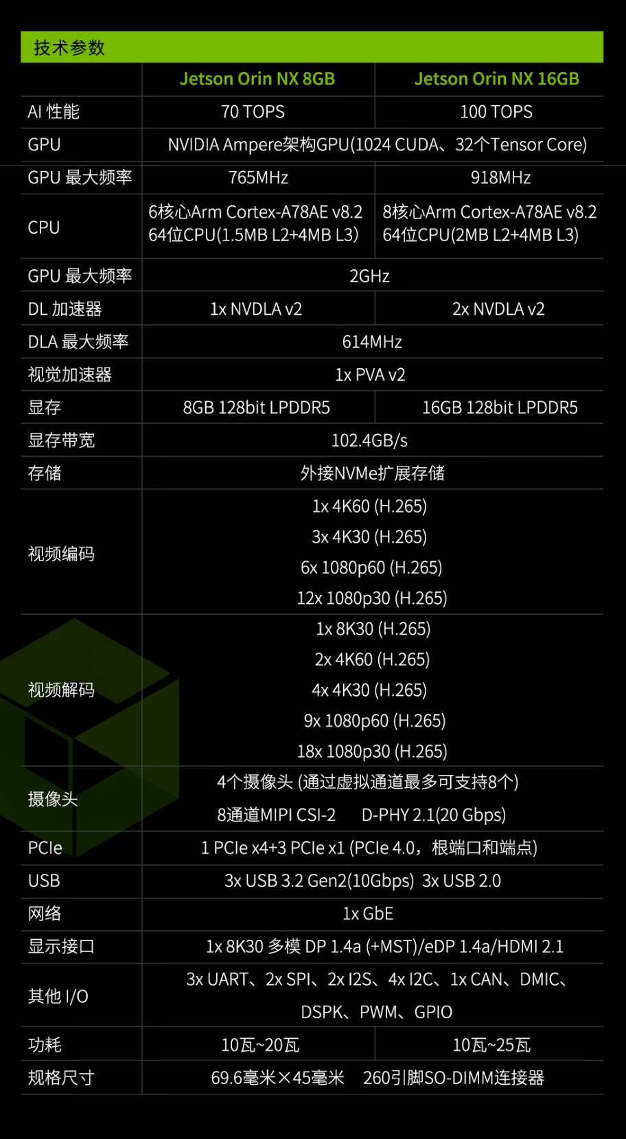 Jetson Orin NX 16GB Module 适用于自主机器人与无人机(仓储搬运、农业监测)、智能视觉与工业检测(缺陷检测、设备预测性维护)、医疗与生命科学(医学影像分析、便携式诊断设备)、智慧城市与交通(交通监控、智能灯控)、自然语言处理(智能语音助手、机器翻译)等场景。